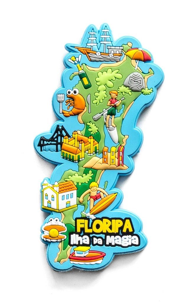 Ímã emborrachado de Florianópolis. Ótima lembrança da sua viagem ou mesmo de sua terra natal. Praia, sol, surf, belezas naturais, passeios de barco e festas regionais logo ali cruzando a ponte! Coloque a ilha da magia na sua geladeira ;-)
